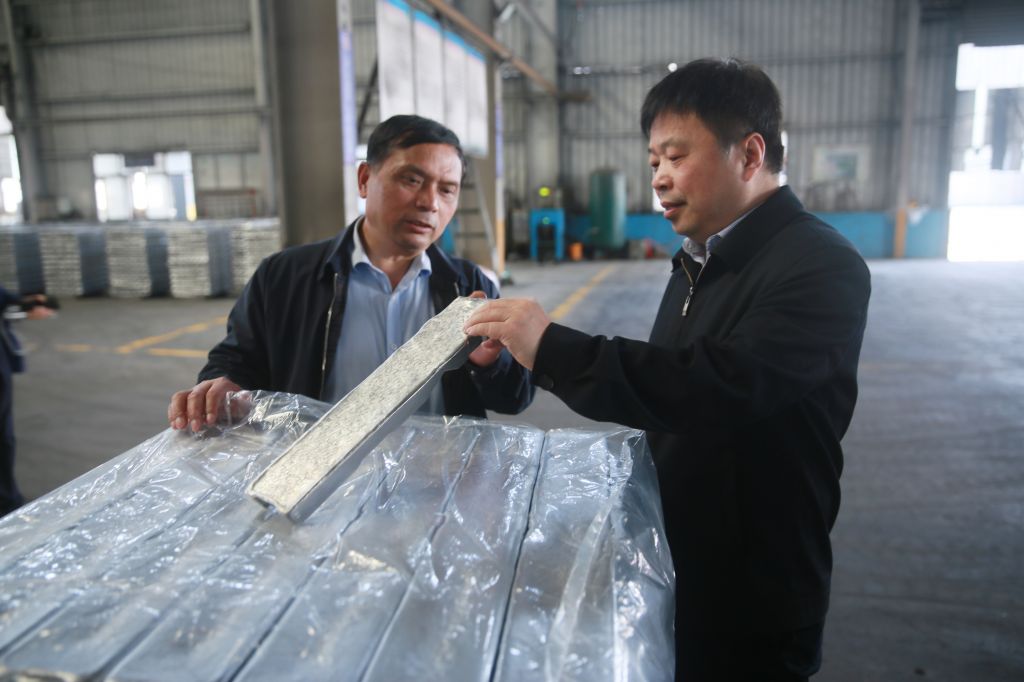 Accompanied by Chairman Peng Baotai, Chairman Zeng and his party successively visited the copper strip workshop, phosphor copper ball workshop, aluminum profile workshop, aluminum alloy ingot workshop and copper bar workshop. It took an hour to turn around the whole plant area.